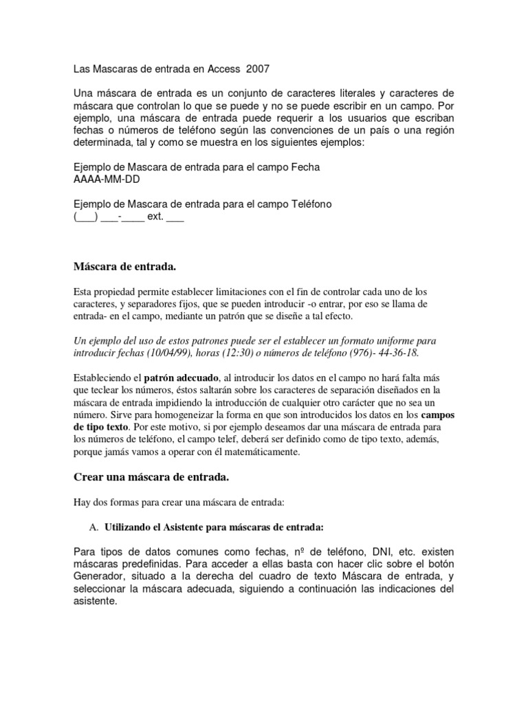 Ejemplos De Mascaras De Entrada En Access - Compartir Ejemplos